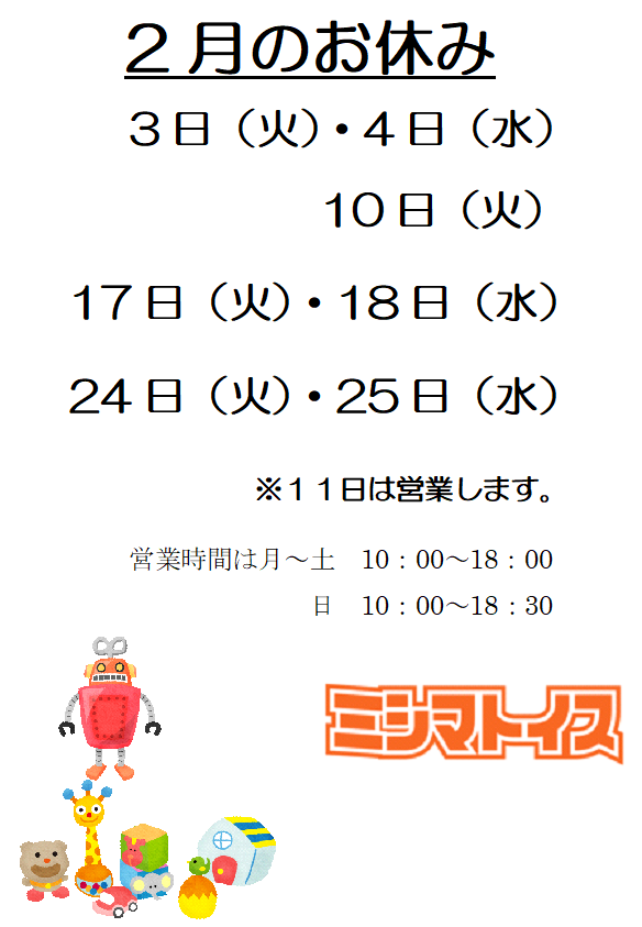 2月のお休みのご案内